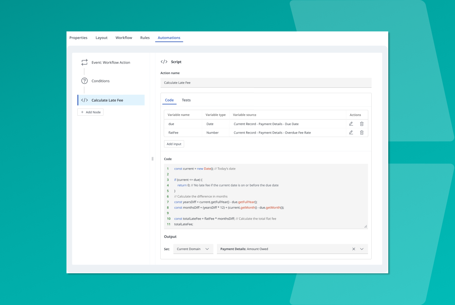 Perform complex calculations, script in the UI, automate business logic and streamline workflows all from the RegWorks user interface. An inbuilt testing framework allows for quick debugging and validation before scripts are published – and without the need for a developer.