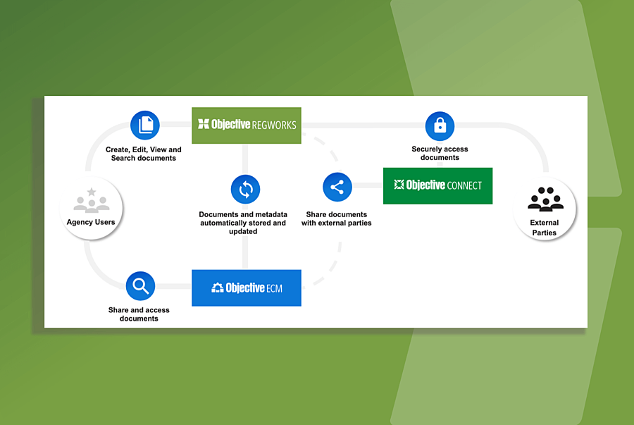 Objective RegWorks natively integrates with Objective Connect to reduce administration and complexity. This seamless integration enables agencies to streamline business processes, prevent duplication and double handling of data with enhanced data security.